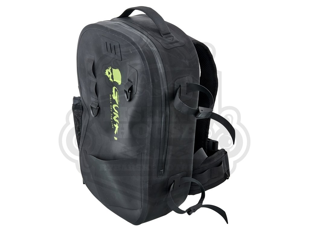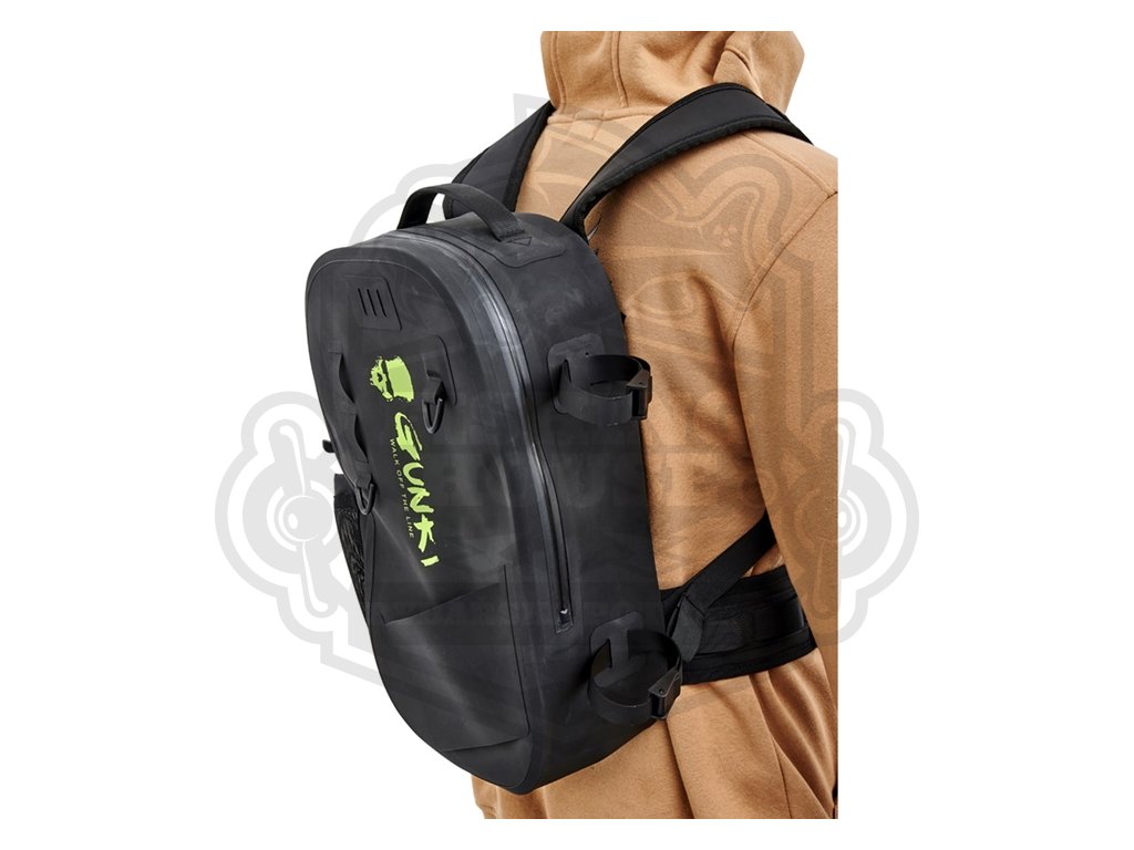 Nezbytnost pro chytání ve vodě! Nepromokavý batoh GUNKI PROTEAM BACKPACK je navržen s ohledem na potřeby rybářů, kteří se při lovu pohybují ve vodě, aby se dostali na hůře přístupná místa nebo získali delší náhozy. Jeho spodní část je tvořena jednolitým blokem, který chrání obsah batohu při kontaktu s vodní hladinou. Použité materiály, zatavené švy a vodotěsný zip (který nekončí u dna) zajišťují vysokou úroveň ochrany proti vniknutí vody. Batoh je vyroben z nepromokavé tkaniny 900D polyester s TPU zátěrem a odpovídá voděodolnosti stupně IP6. Je pevný, kompaktní a vybavený 'D' kroužky a popruhy pro upevnění dalšího vybavení, jako je podběrák, atraktanty nebo kleště. Na boku se nachází systém kapsy s nastavitelným popruhem pro přenášení lahve s vodou nebo náhradního prutu. Polstrované ramenní popruhy a nastavitelný hrudní pás zajišťují pohodlí při chůzi, brodění či delším pohybu v terénu a zároveň neomezují pohyb při samotném rybolovu. Technický, odolný a vodotěsný batoh pro náročné rybáře. Rozměr: 43×26,5×12 cm. Složení: polyester 900D s TPU zátěrem.