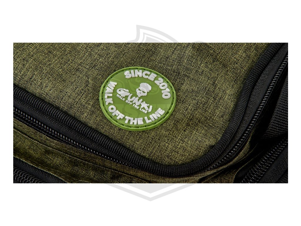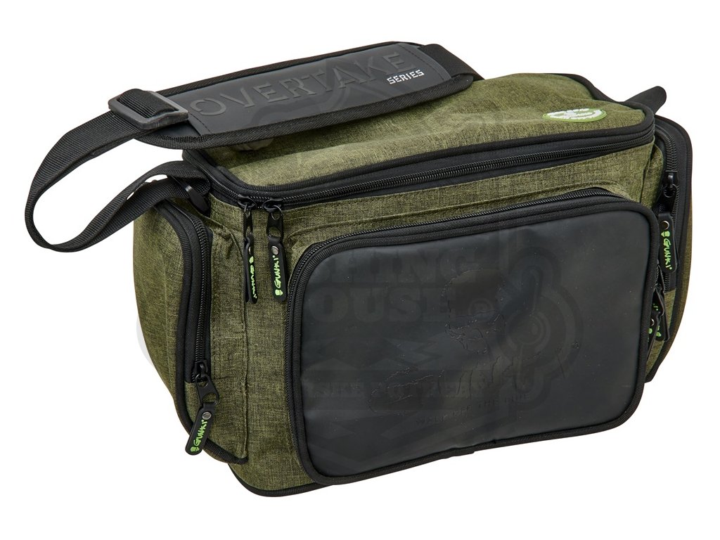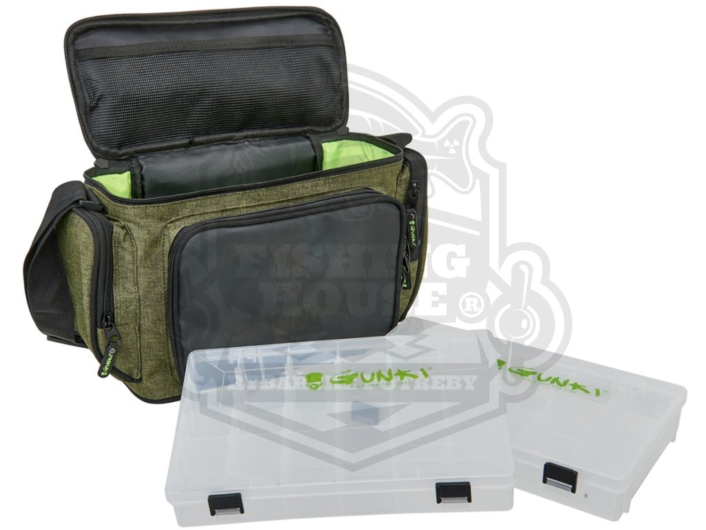 Taška pro uskladnění všeho potřebného na přívlač. Obsahuje velkou hlavní komoru na zip, tři menší vnější kapsy na zip a nastavitelný polstrovaný popruh přes rameno. Pevná odolná tkanina je doplněná o kvalitní zipy. To vše v Gunki designu. Součástí jsou i dvě krabičky na nástrahy o rozměrech 27,5x19,5x4,5 cm. Rozměr tašky: 29x13x21 cm.