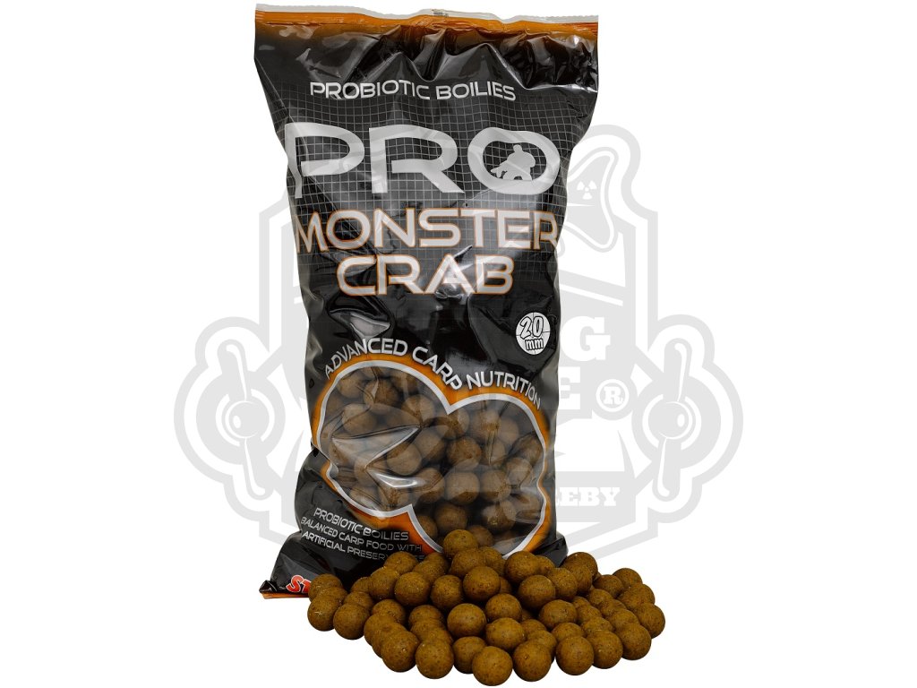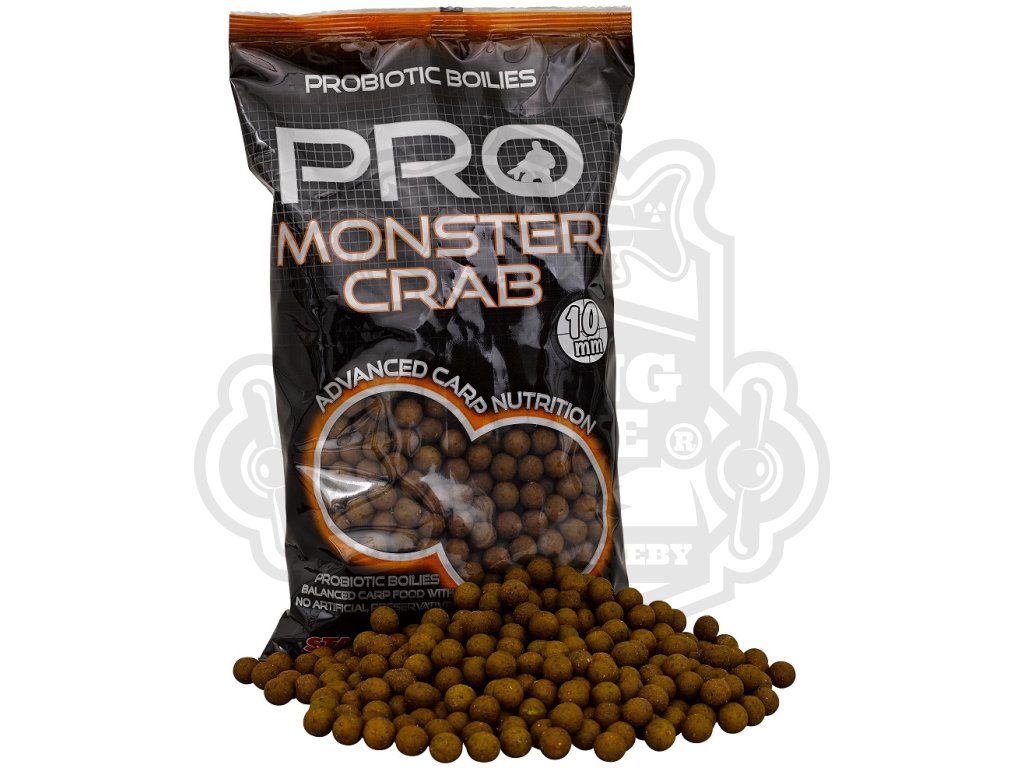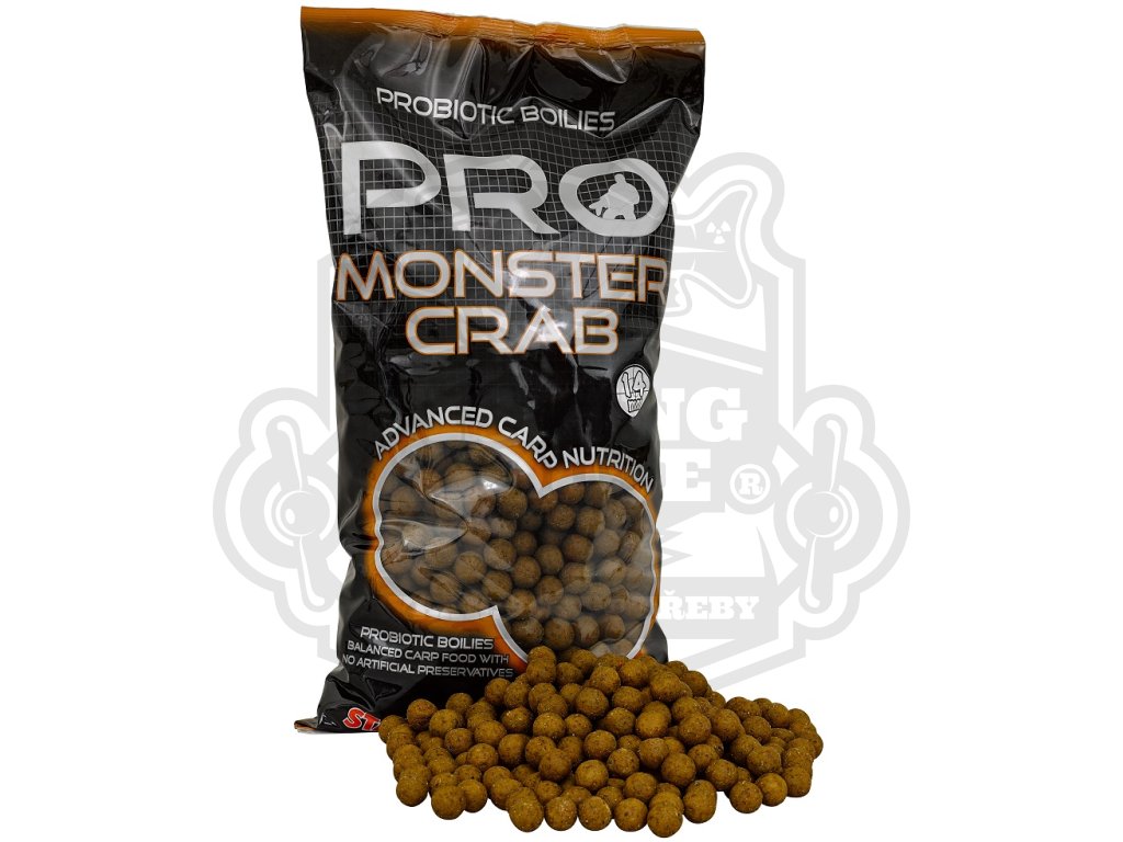 Je to nutričně bohatá nástraha lehce rozpoznatelná kaprem jako zdroj potravy. Stejně jako ostatní boilies a komponenty je i PRO Monster Crab plný přírodních ingrediencí a derivátů jako jsou kvasinky, betain, extrakt z jater, minerály, oleje, které jsou pro kapry přirozené a potřebné pro jejich výživu. Je postaven především na bázi speciálních rybích mouček a výtažků z kraba. Díky tomuto složení se Monster Crab stává pro kapry neodolatelným soustem. Komponenty pro výrobu tohoto boilies jsou vybírány velmi pečlivě z těch nejkvalitnějších surovin. Správná kombinace všech složek s komplexem tekutých atraktantů přispívá k rychlému přilákání kaprů. Díky jeho složení je toto boilie vhodné i na dlouhodobé krmné kampaně a výpravy. Při testování se ukázalo, že se jedná o selektivní nástrahu pro opravdu velké kapry.
