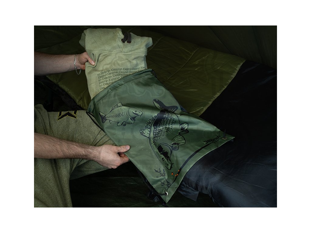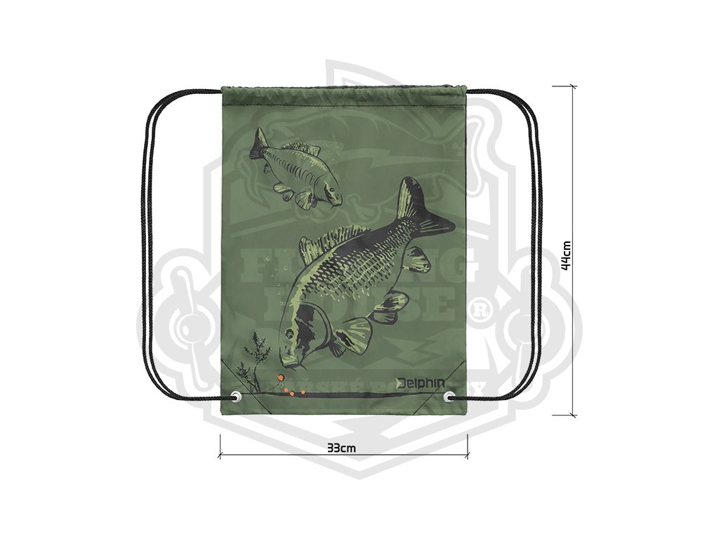 Taška Delphin Simple Bag CARP s motivem krmících se kaprů je skvělým doplňkem pro každého nadšence rybolovu. Je vyrobena ze 100% polyesteru, díky čemuž je lehká, odolná a snadno udržovatelná. Zavírání na stahovací šňůrky umožňuje snadné nošení na zádech nebo přes rameno a zároveň zajišťuje bezpečné uložení vašich věcí. Je ideální pro přenášení menšího rybářského příslušenství, osobních věcí nebo jako praktická taška pro každodenní použití. Její atraktivní design a univerzální využití z ní dělají perfektní volbu pro všechny, kteří milují přírodu a rybolov.Materiál: 100% polyester