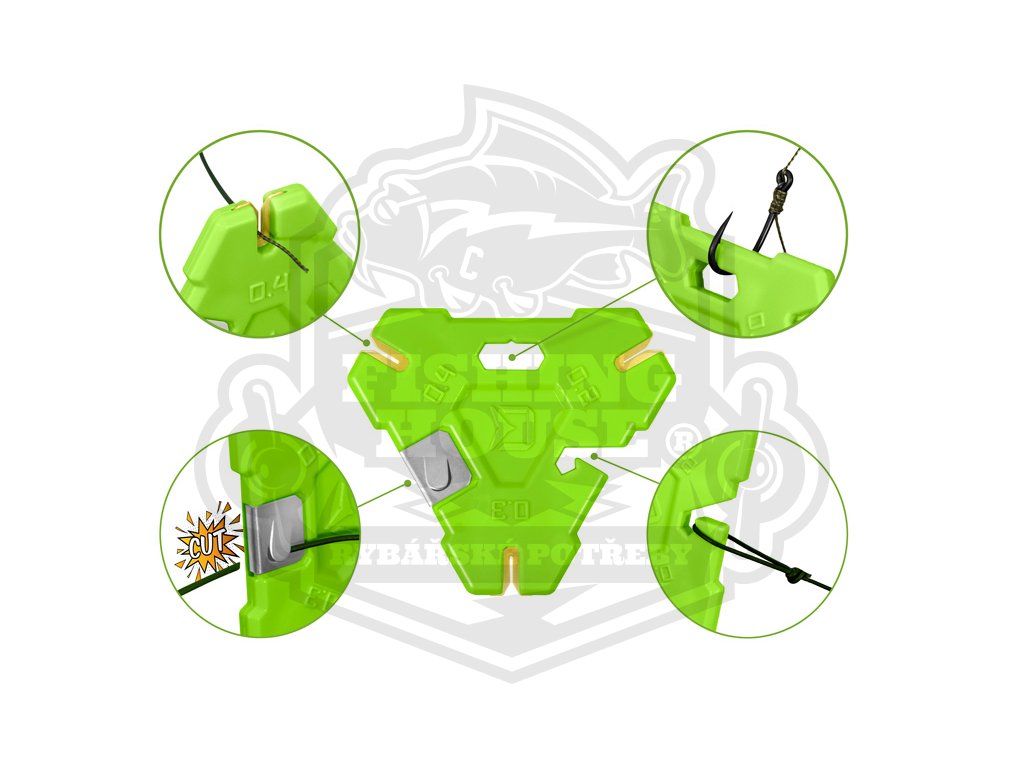 Praktická pomůcka pro výrobu návazců s jedinečným designem, navrženým značkou Delphin. Pomocí produktu Multiskin zvládnete provést vše potřebné pro zhotovení kaprařského, či jiného rybářského návazce. Pro komfortní uchopení a lepší manipulaci je Multiskin navržen do tvaru trojúhelníku. Disponuje třemi páry břitů na stahování potahů ze ztužených šňůr. Díky tomu bude pro vás hračkou stáhnout potah z tenčích, ale i tlustších návazcových šňůr, aniž by došlo k poškození jejich jádra. Druhou funkcí je možnost dotahování smyček, k čemuž slouží speciálně tvarovaný výřez na boku. Pro utahování navázaných háčků či narovnávání fluorokarbonu lze využít i otvor v těle produktu s drážkou na háček. Právě zde lze háček uchytit tak, aby během dotahování vždy držel na svém místě a nedošlo tak k nechtěnému píchnutí do prstů či jinému poranění. Multiskin disponuje i ostrou čepelkou, sloužící k řezání šňůr či vlasců. Během vázání návazce tak již nebudete potřebovat žádné nůžky, kleště či utahovače.