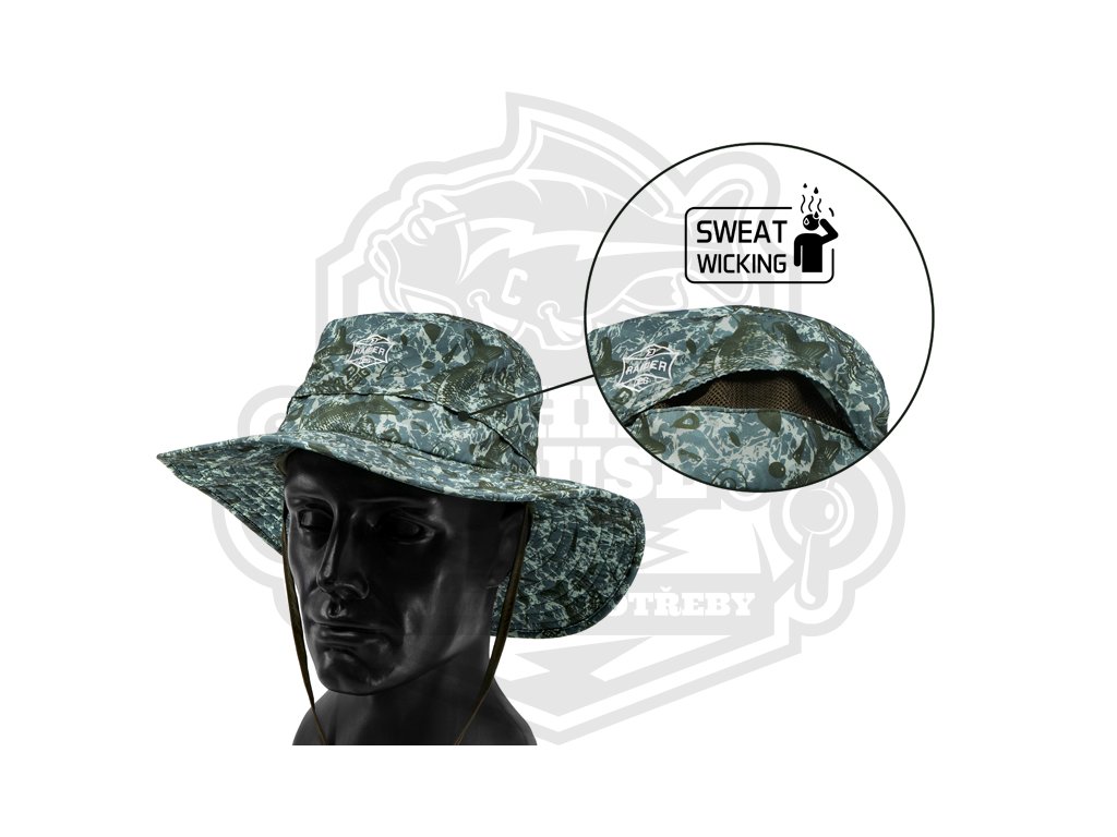 Delphin RAIDER je stylový klobouk v jedinečné C2G kamufláži, který poskytuje ideální ochranu hlavy během slunečných dnů, ať už se vydáte na ryby, lov nebo dovolenou u moře.Klobouk je vyroben z nylonového materiálu, který je z vnější strany kompletně potisknut C2G vzorem, čímž perfektně ladí s ostatními produkty z této série. Čtyři odvětrávací otvory znásobují uživatelský komfort a redukují nadbytečné pocení v oblasti hlavy. Kvůli lepšímu větrání a zabránění vniknutí hmyzu přes větrací otvory, je uvnitř našita praktická síťka.
