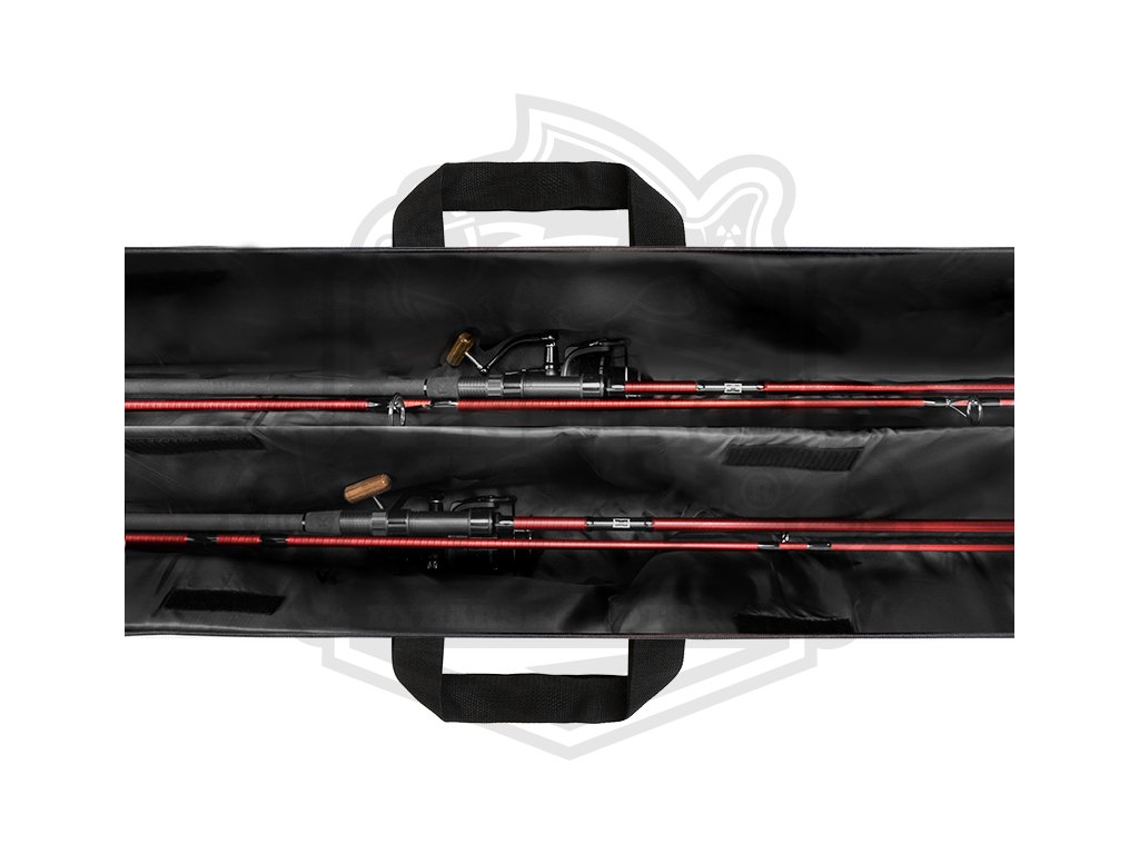 Díky rozšířené části pro uložení navijáků se dovnitř vejdou všechny standardně používané kaprařské sestavy, přičemž jsme mysleli i na pruty s naváděcími očky o průměru 50 mm, pro které je v jednotlivých komorách dostatek prostoru. O fixování prutů se postarají suché zipy na samotných přepážkách, ale i pásky opatřené suchým zipem ve spodní a vrchní části pouzdra.