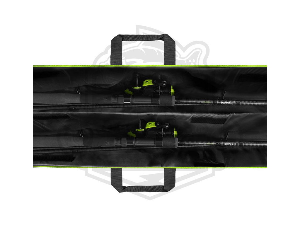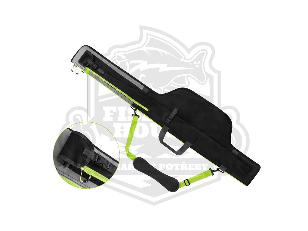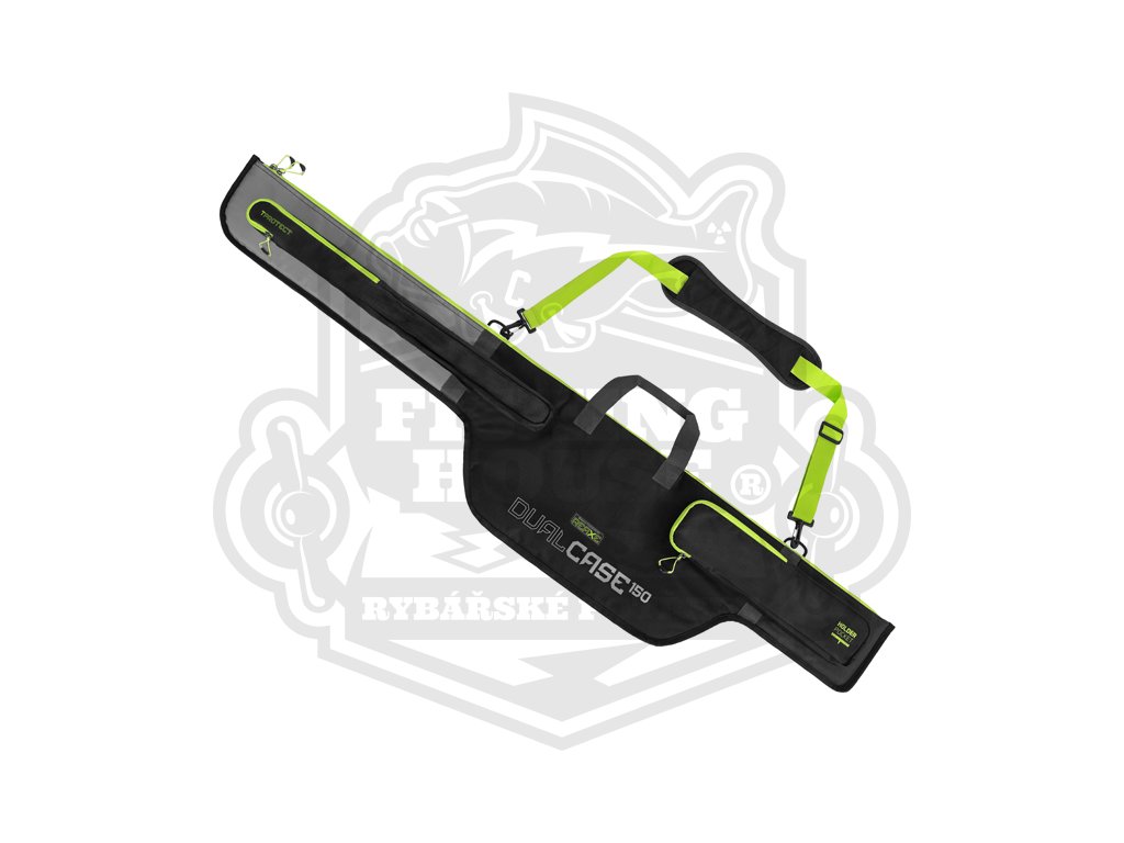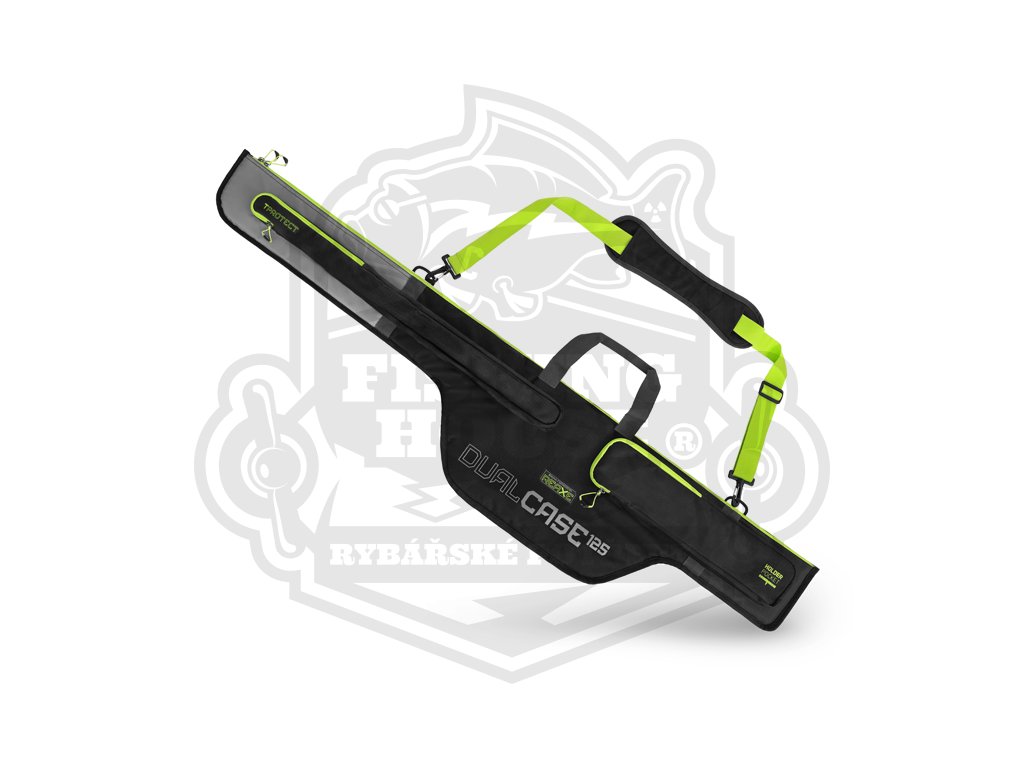 REAXE DualCASE je dvoukomorové pouzdro speciálně navržené pro pohodlné uložení a transport prutů a dalšího náčiní určeného pro lov feederovou technikou. Vyznačuje se velkorysým vnitřním prostorem, což v praxi znamená, že v pouzdru budete mít vždy dostatek místa pro různé modely feederových prutů a nestane se, že by konkurenční model prutu do našeho pouzdra nepasoval. Pouzdro je navrženo v černo-šedé barvě s výraznými zelenými doplňky a je vyrobeno z odolné textilie, která bez problémů odolá slabšímu dešti, vlhkosti způsobené rosou a hrušímu zacházení. Ve spodní části je navíc odolný, nepromokavý materiál umožňující postavení pouzdra na mokrou zem, aniž by došlo k jeho znehodnocení. Pouzdro je na všech stěnách včetně předělovací přepážky plně polstrované měkkou výstelkou. Tím pádem nehrozí při transportu 2 prutů jejich vzájemné poškození. Díky rozšířené části pro uložení navijáků se dovnitř vejdou všechny standardně používané feederové sestavy. Pouzdro je vybaveno vnější kapsou T-PROTECT, která je speciálně určena pro uložení tubusu s feederovými špičkami. Kapsa je také vyrobena z odolné pogumované tkaniny, díky které budou náhradní špičky lépe chráněny. Na téže straně se nachází podélná kapsa HOLDER POCKET se zipem, která je určena pro naše feederové držáky z řady REAXE, případně další menší příslušenství. Na opačné straně se nachází podélná kapsa s plastovým klipem a zipem určená pro skládací podběrák nebo podběrákovou tyč. V jeho spodní třetině se nacházejí další dva otvory určené pro zasunutí vidliček, doplněné zatahovacím popruhem určeným k jejich zafixování. Kvalitní a dostatečně velký odepínatelný ramenní popruh a dvě látkové rukojeti usnadňují transport pouzdra a jeho ukládání. Mohutné zipy s kvalitními běžci a promyšlenými úchyty umožňují komfortní uzavření jednotlivých částí pouzdra.