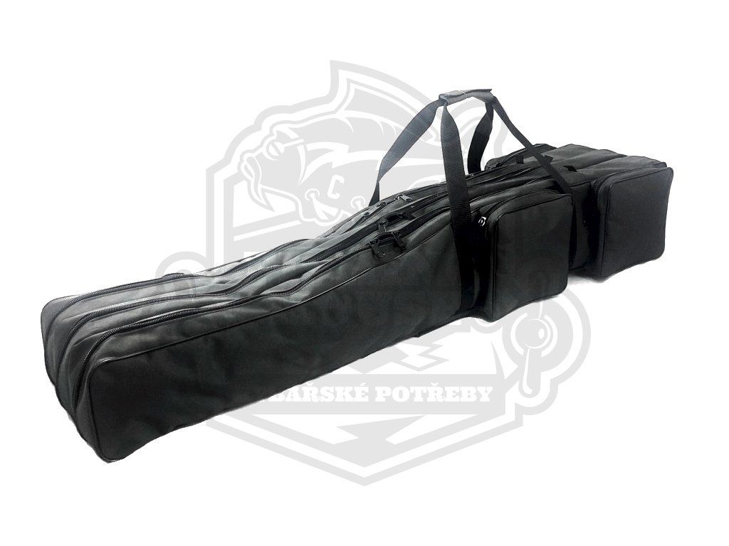Spolehlivý a praktický obal na rybářské pruty (pouzdro na pruty) se třemi komorami, kapsou na podběrák a třemi bočními kapsami na zip. Tento obal na pruty nabízíme v délkách 90 až 210 cm. Uvnitř komor najdete praktická poutka pro uchycení prutů. Obal na pruty můžete nosit v ruce pomocí vyztužených nosných popruhů nebo na zádech jako batoh. Zádové popruhy jsou vyztužené a prošité a jsou nýtované k obalu. Obaly na pruty je vyroben ze špičkového materiálu Kortexin 600D (100% polyester se zátěrem PVC) v barvě černo-zelená.