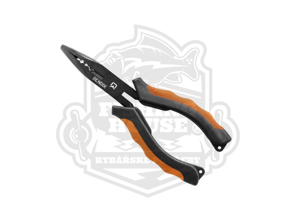 Delphin BENDIX jsou multifunkční kleště se zahnutou špičkou, které jsou určeny pro uvolňování háčků z tlam dravých ryb v případech zaseknutí v té nejtvrdší části. Jejich délka je 16cm. Vnitřní strana ramen kleští poskytuje dostatečně drsnou plochu pro uchopení i velkých háčků včetně dvou a trojháčků. Navíc jsou jejich čelisti vybaveny střihačem ocelových a wolframových lanek a krimpovací částí pro jednoduché i dvojité krimpy. Jsou vyrobeny z oceli s vysokým podílem uhlíku a jejich obě rukojeti jsou vybaveny plastem oranžové a černé barvy, které jsou dobře viditelné za každých podmínek a dobře padnou do ruky. Na obou ramenech rukojeti se nacházejí otvory pro provlečení šňůrky. S kleštěmi BENDIX budete připraveni na každou situaci při lovu dravců.Doplňkové parametry
