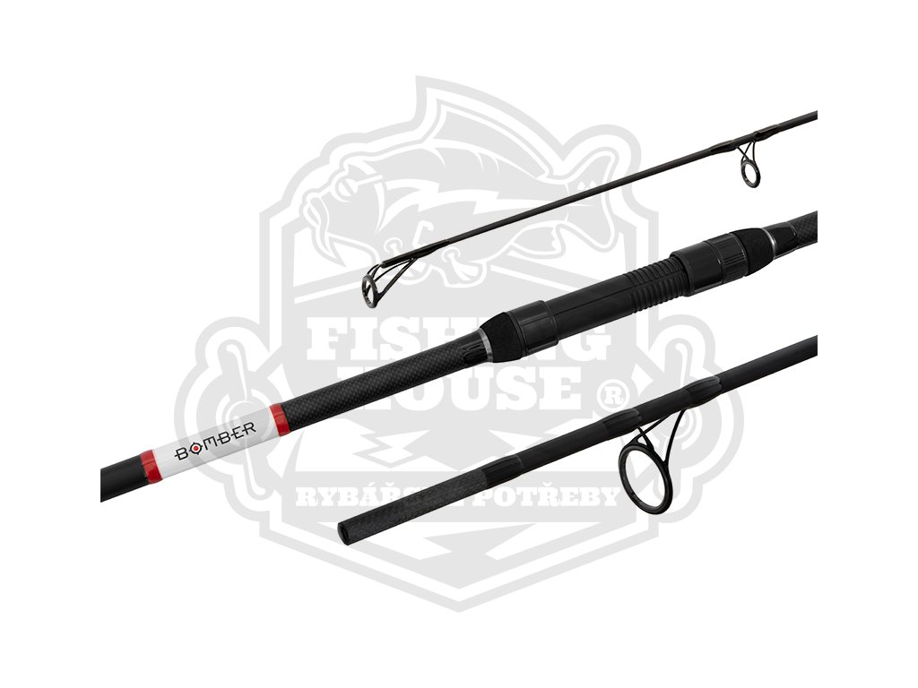 Osazen je silnými dvoupatkovými očky s výplněmi SiC, koncovým "trychtýřovitým očkem" a 50mm náběhovým očkem. Prodloužené DPS sedlo dovoluje upevnění těch největších surfových navijáků. Decentní design prutu je kontrastem černé matné barvy a bíločervených detailů. S Bomberem si zakrmování zamilujete!