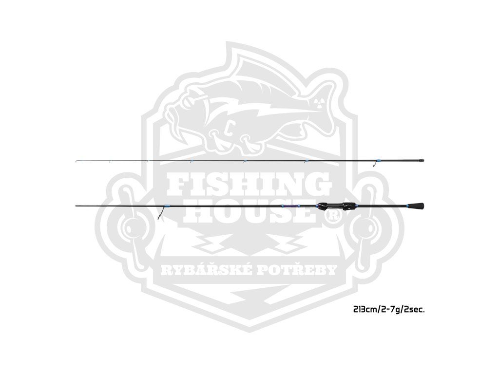 Sedlo prutu je velmi lehké a díky ergonomickému tvaru se skvěle drží v ruce. Po celé délce jsme použili jednostopková očka s modrým metalickým vinutím, která jsou rozmístěna tak, aby zaručovala rovnoměrné rozmístění síly a optimální vyvážení prutu. Povrchová úprava je matná, doplněná lesklým povrchem na rukojeti s efektním 3K karbonovým motivem.