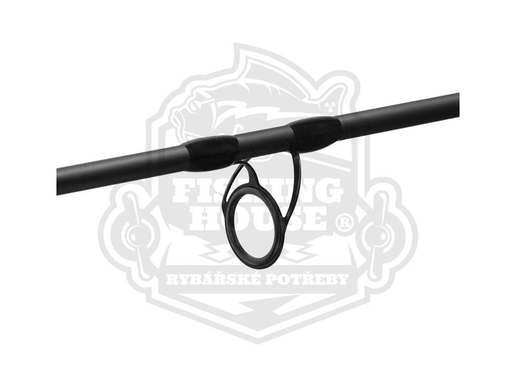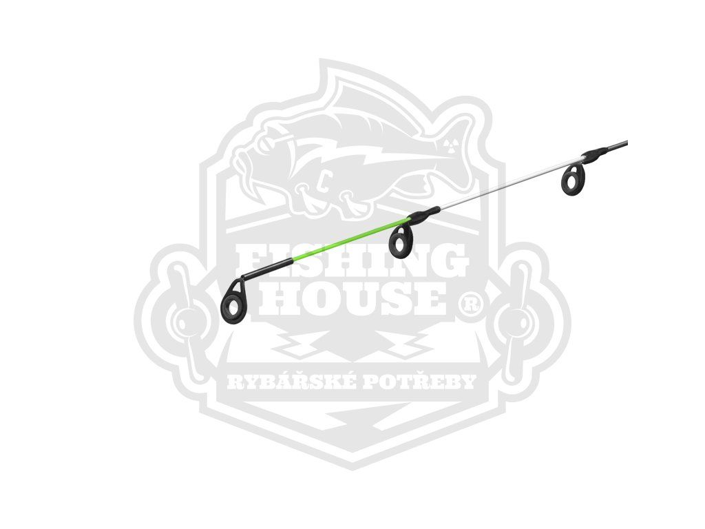 Blank prutu je osazen přetvarovanými, dvoustopkovými očky se SIC výplní, které excelentně vedou vlasec či šňůru a zároveň zamezují jejich zamotání během nahazování. Díky jejich černé barvě vytvářejí spolu s matným blankem a korkem na rukojeti vyladěný sportovně-elegantní design, doplněný o svěží, bílo zelené prvky.