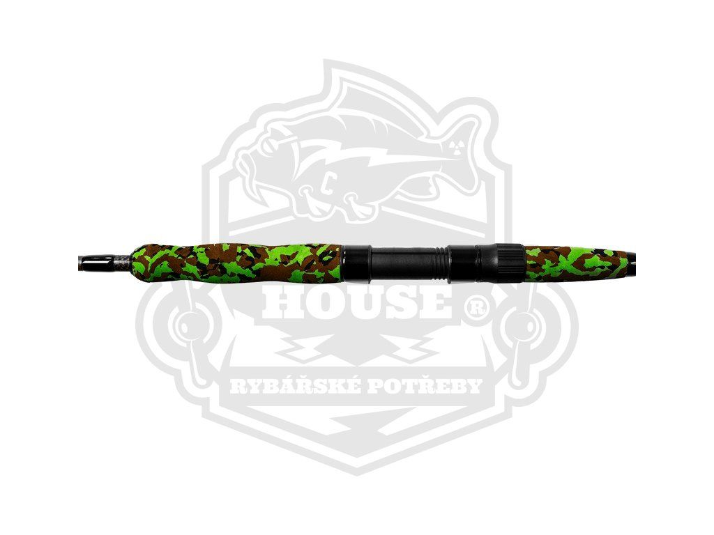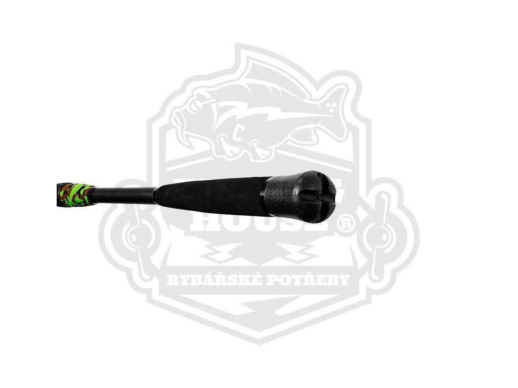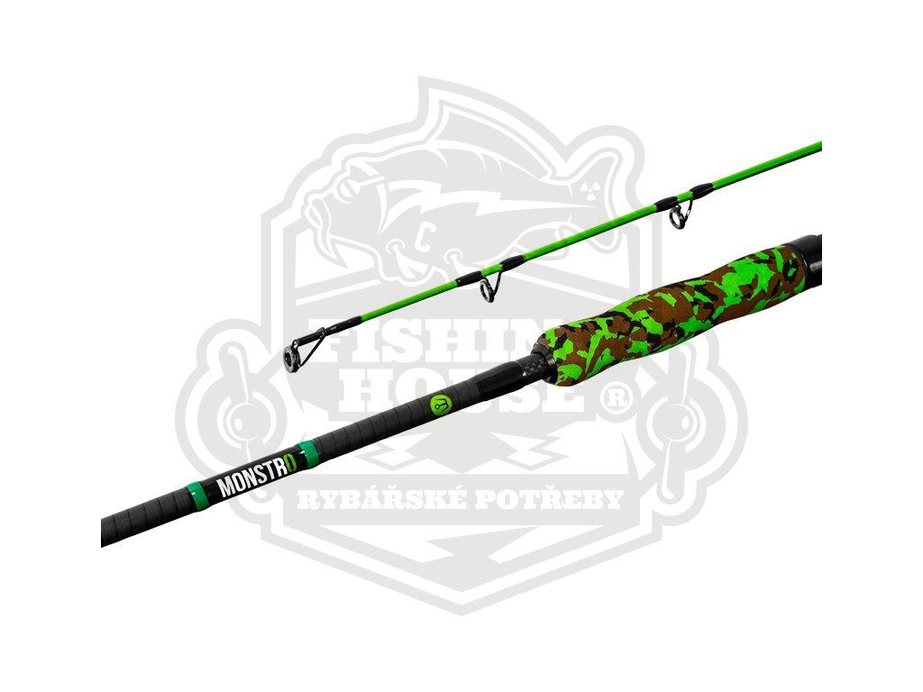 Nová generace prutu MONSTRO je zaměřena na aktivní lov sumců na vábničku nebo vertikální přívlač.MONSTRO vás na první pohled zaujme novým, propracovaným a agresivnějším designem. Prut si prošel přepracováním a vyztužením blanku. Gramáž poskočila na úctyhodných 250g a díky technickým řešením přináší rovnoměrné rozdělení síly při zdolávání, bez zbytečných spojů. Primárně je určen pro extrémní lov zejména z člunu nejen na řekách nebo jezerech, ale dokonce zvládá i lov z člunu na moři. Rukojeť má nový ergonomický design, který oceníte v extrémních situacích a její koncovka je vhodná pro použití se zdolávací pásem. Zdoláte s ním i ty největší ryby z hlubin. Obrovské sumce či velké mořské ryby. To jsou cíle tohoto krátkého, avšak extrémně silného prutu. Už při navrhování jsme dbali na výjimečně silný blank, který zkrotí i ty největší krále vod. Sedlo navijáku je navíc pojištěno ještě maticí, což zaručuje, že ani v těch nejkrizovějších momentech Monstro nepoleví. Dělení prutu je asymetrické - blank (150cm), včetně všech oček se vkládá do rukojeti (70cm), protože pouze tak je možné garantovat opravdovou sílu neoslabenou klasickou spojkou. Už při navrhování jsme dbali na výjimečně silný blank se zpevňujícím karbonovým opletem PowerWrap, který je velmi pevný a výborně pracuje při nahazování či zdolávání. Očka prutu jsou zesílena a vyvázána s vysokým důrazem na celkovou odolnost a vysoké namáhání.