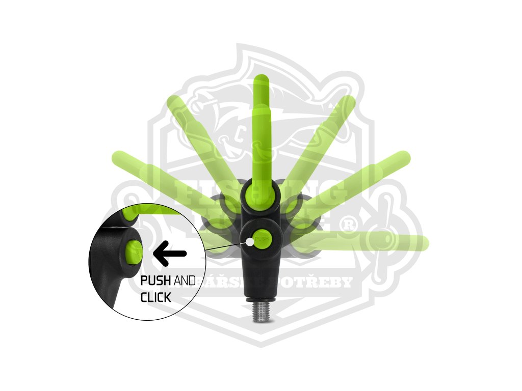 Držák na feeder tvaru L je výborným pomocníkem každého feederisty. Tvar držáku umožní udržet prut ve vidličkách i při silném záběru. Díky důmyslnému systému tlačítka ve spodní části, lze tento držák polohovat a následně polohu zajistit. Šířka ramen je 17 cm. Držák je osazen univerzálním závitem a je kompatibilní s většinou vidliček a stojanů dostupných na trhu. Barevná zeleno-černá kombinace dokonale doplňuje feederovou řadu Reaxe.