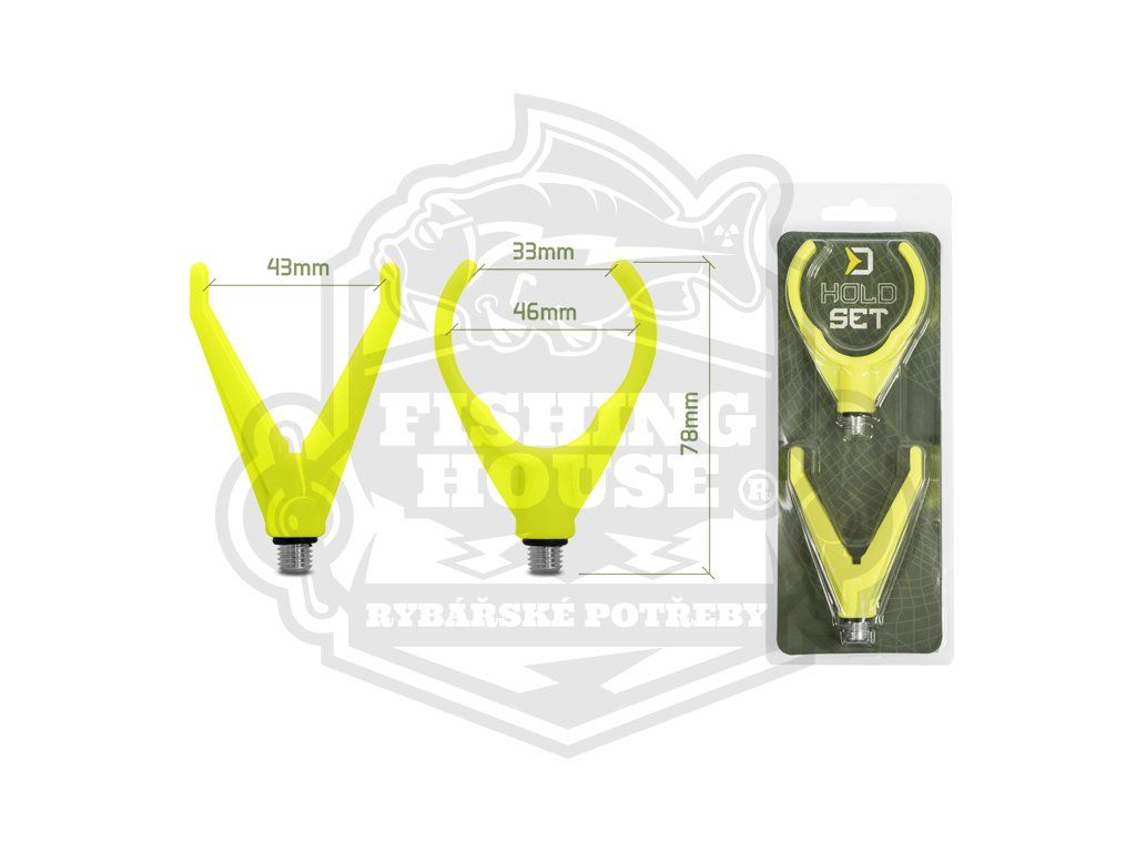 Sada držáků prutu, která se skládá z předního a zadního držáku s univerzálním závitem, pro přichycení k jakýmkoliv vidličkám či stojanům. Držáky jsou vhodné zejména pro feederisty, ale i rybáře, kteří rádi loví na položenou či plavanou.HoldSET je vyroben z odolného plastového materiálu a díky své praktičnosti a ceně jej ocení jak začátečníci tak zkušení rybáři. Zadní držák, navržený ve tvaru písmene U, umožňuje bezpečné uložení prutů s různými průměry rukojetí. Přední držák ve tvaru písmene V je opatřen drážkou, pro plynulý přechod vlasce během záběru.