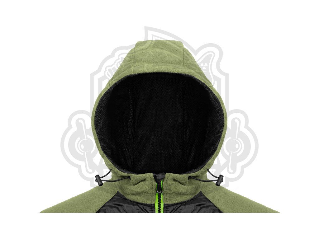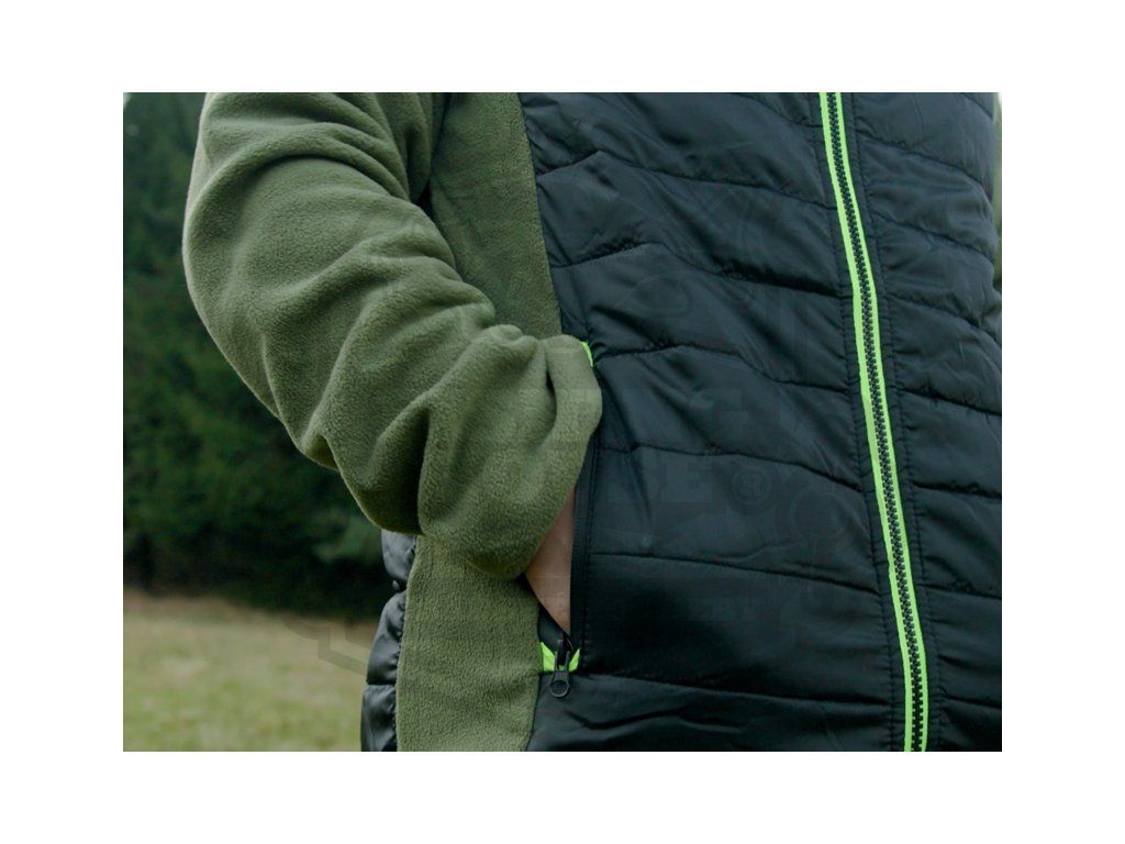 Střed bundy tvoří lehký, prošívaný panel, který účinně chrání před větrem a chladem, zatímco rukávy, boky a kapuce jsou pro maximální pohodlí a volnost pohybu vyrobeny z na dotek příjemného měkkého flísu, který zahřeje i během sychravých dnů. Nastavitelná kapuce je zevnitř doplněna prodyšnou síťkou, která zvyšuje komfort při aktivním nošení a zajišťuje lepší ventilaci.