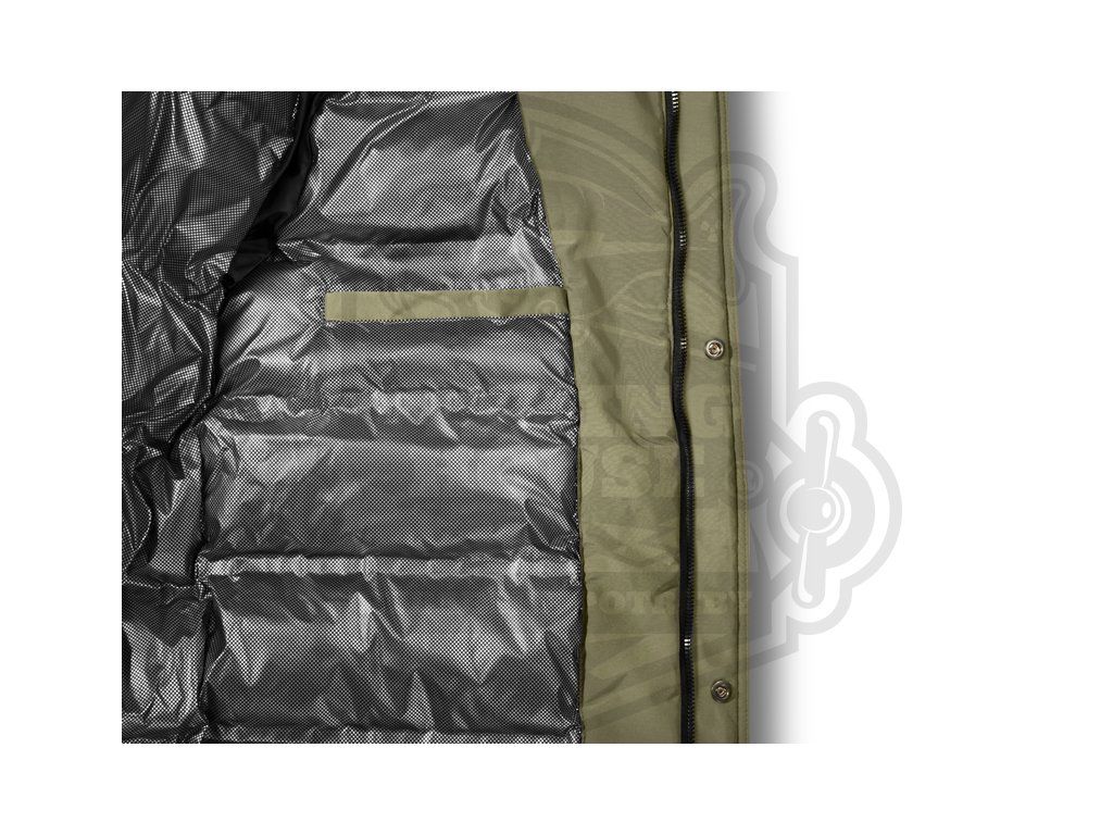 Spodní lem bundy lze stáhnout gumičkou z obou stran, což zvyšuje tepelnou izolaci, chrání záda a zejména kříže před větrem. Po stranách se nacházejí prostorné kapsy se zipem, které díky speciálnímu šití poskytují dostatek místa k uschování například termosky s teplým čajem. Ve vnitřní části se nachází praktická kapsa vhodná na doklady nebo jiné cennosti.