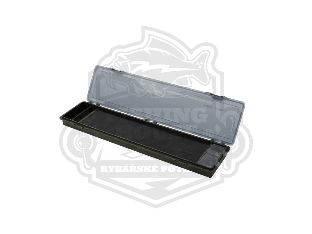 Uvnitř se nachází plastový naklikávací díl na uchycení háčků a pěna s rozměry 260x69 mm, do které je možné pomocí přiložených špendlíků uchytit konec montáže. Špendlíky se žlutou kulatou hlavičkou v počtu 20 ks se nacházejí ve dvou uzavíratelných krabičkách. Návazcovník tmavé zelené barvy se uzavírá šedým průsvitným krytem na třech pantech se dvěma zámky. Na krytu se nachází praktické měřítko v centimetrech (30 cm) a v palcích (12"). Cenově dostupný a velmi praktický kus výbavy nejen pro kapraře.