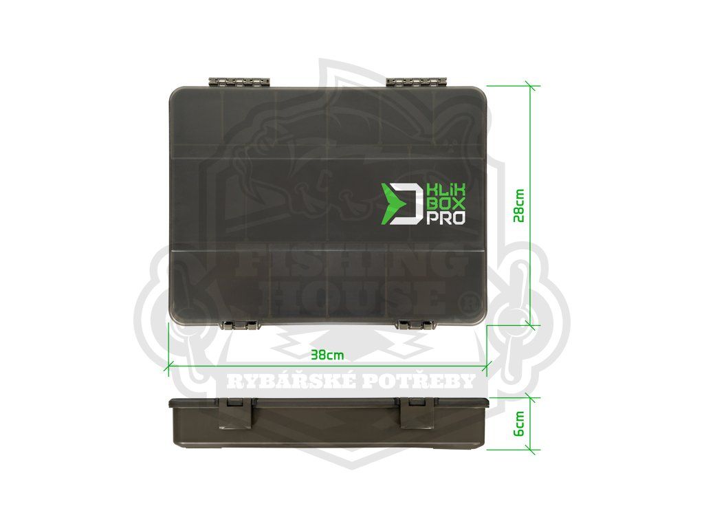 Již z názvu vyplývá, že se jedná o nejpropracovanější a největší organizér ze série KlikBOX. Jeho úložný prostor dokonale pojme velké množství drobné bižuterie, koncových montáží, návazcových materiálů a dalšího příslušenství, které je nedílnou součástí vaší výbavy.Ze série KlikBOX se varianta PRO vyznačuje hlavně největším úložným prostorem. Ten je rozdělen na tři hlavní části, doplněné o polohovatelné přepážky. Díky nim si můžete vnitřní uspořádání přizpůsobit přesně podle svých představ. Organizér obsahuje také dva menší boxy KlikBOX mini 3 a 4, které jsou vhodné pro uložení drobné bižuterie. Aby se předešlo nechtěnému otevření, jsou vybaveny pevným plastovým klipem.