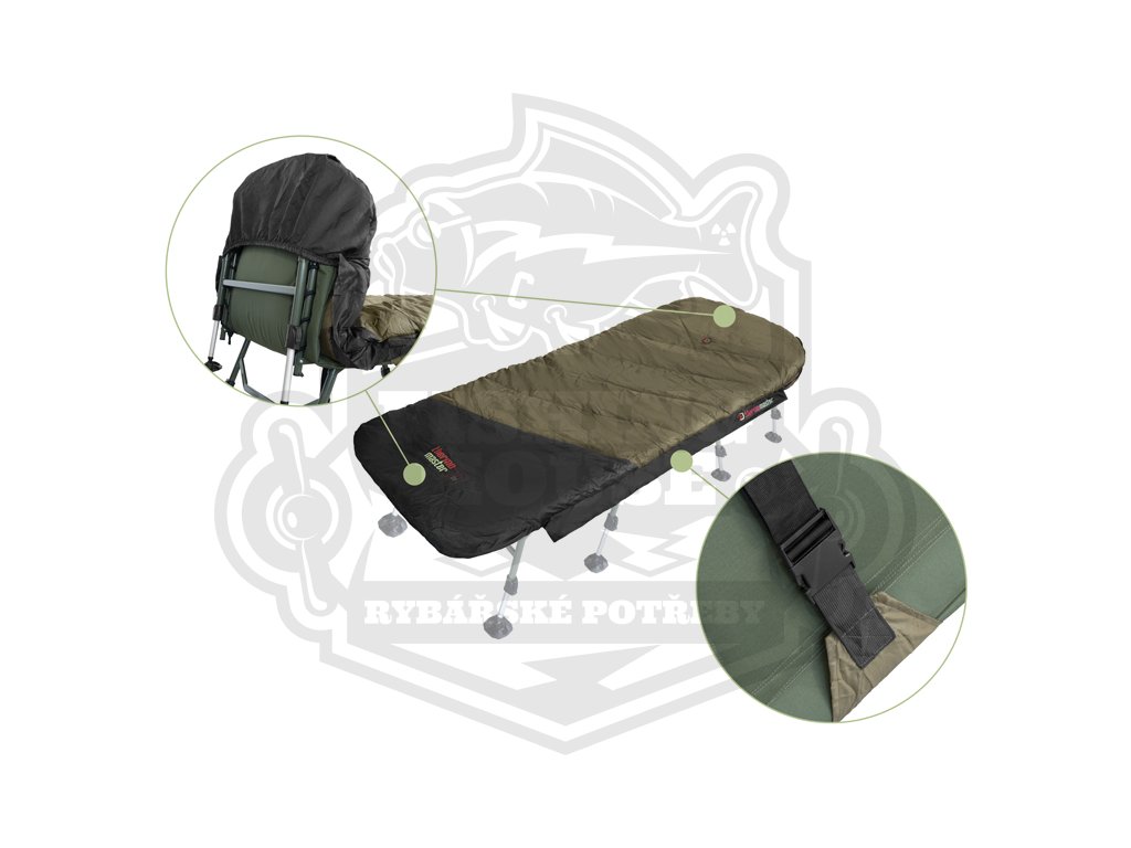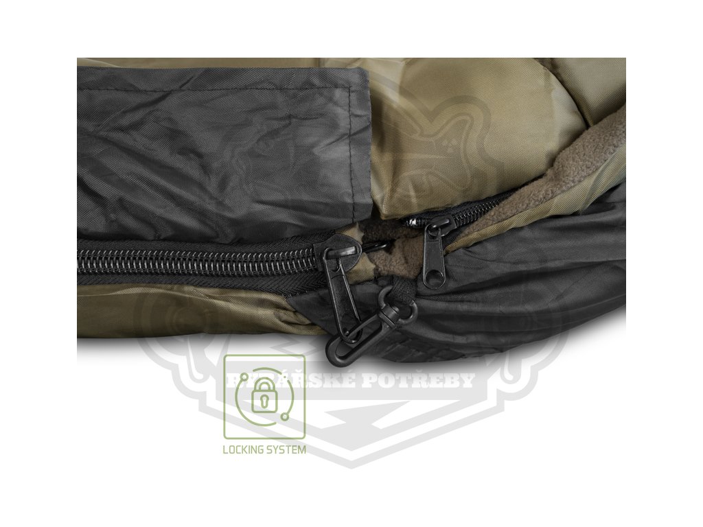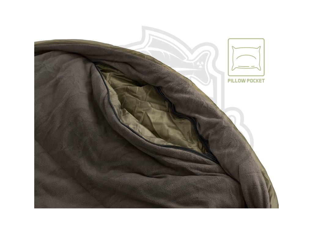 Všechny vnitřní vrstvy jsou tvořeny měkkým fleecem hnědé barvy, který je příjemný na dotek a také výjimečně hřejivý, takže se budete cítit komfortně i v extrémní zimě. Hlavní zip po obou stranách je mohutný, pevný a nezasekává se, čili pokud budete mít záběr, stačí potáhnout vrchní vrstvu a můžete utíkat za rybou. Zip na druhé straně si můžete zafixovat pomocí plastové pojistky ve tvaru spony. Mezi každou vrstvou se nacházejí další jemnější zipy umožňující využití kterékoli z vrstev dle vnějších podmínek a Vaší osobní preference. Všechny zipy jsou překryty lemem nepromokavé látky, a tím pádem chráněny před deštěm. V hlavové části se nachází kapsa vhodná pro umístění a uzavření jakéhokoli menšího polštáře.