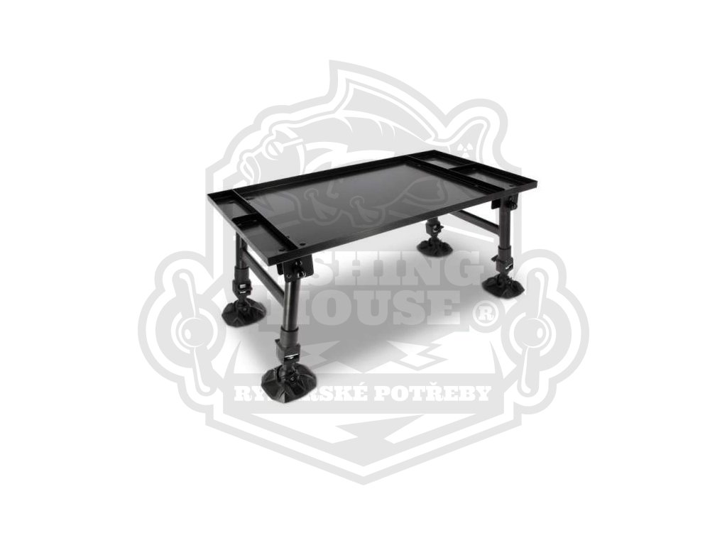 Tento stolek hravě uspokojí přání všech rybářů. Stolek je velký, ale přesto velmi lehký, skladný a stabilní. Navíc velkou výhodou jsou jeho široké, výškově polohovatelné patky na nohou. Celá plocha stolku je hliníková, s 5-ti oddělenými částmi. Jedná se o produkt patentovaný značkou NGT.