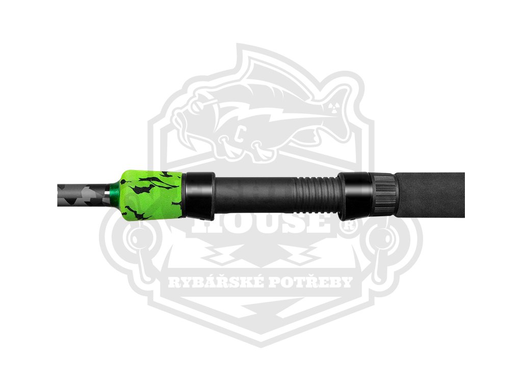 Plná rukojeť, vyrobená v kombinaci černé EVA pěny se zeleno-černou kamufláží dokonale ladí a zároveň poskytuje maximální komfort při rybolovu. Nad rukojetí najdeme kontrastní zelené vinutí a označení série v kamuflážovém poli GreenCODE.