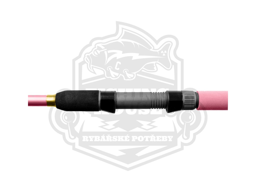 Základem je ověřený štíhlý blank s parabolickou akcí a výbornými mechanickými vlastnostmi. Celá rukojeť je potažena EVA pěnou, která je velmi příjemná na dotek i ve studeném zimním počasí. Navíc je navržena v barevné dvojkombinaci růžové s černou, což vytváří vizuálně velmi pěkný prvek. Rukojeť je v jednom místě ergonomicky zúžená a ukončena je vkusným hliníkovým prvkem růžové barvy s logem. Díky citlivým špičkám, které jsou s prutem dodávány, vám neunikne ani ten nejjemnější záběr od malých ryb. Blank je osazen kvalitními a lehkými SiC očky, které nevytvářejí žádné nadbytečné tření a odpor při průchodu vlasce. V základu je prut dodáván s jednou karbonovou (Heavy) a dvěma CarbonGlass (Light, Medium) špičkami. Feederové pruty Queen nebudou jen ozdobou každé rybářky, ale také plnohodnotným pomocníkem při lovu.