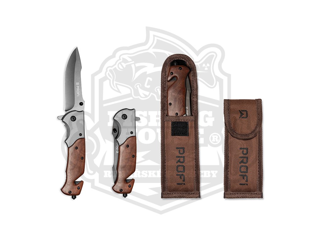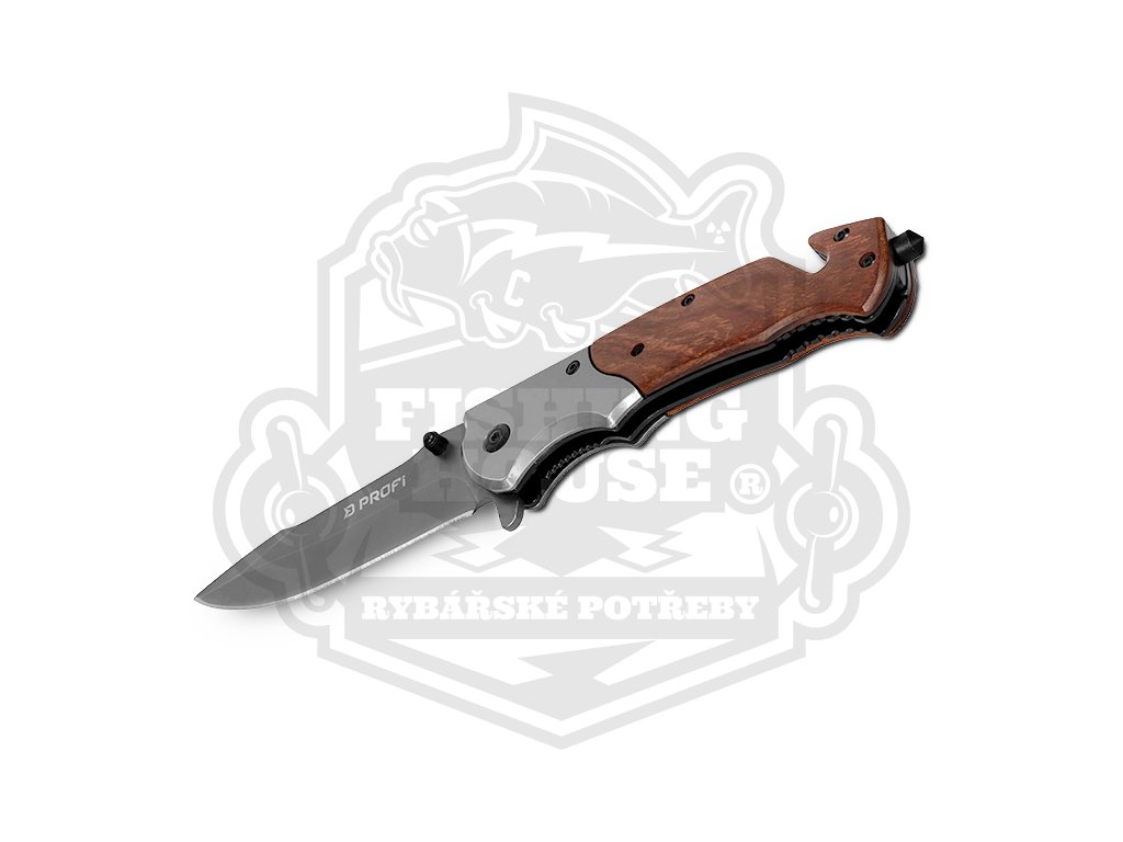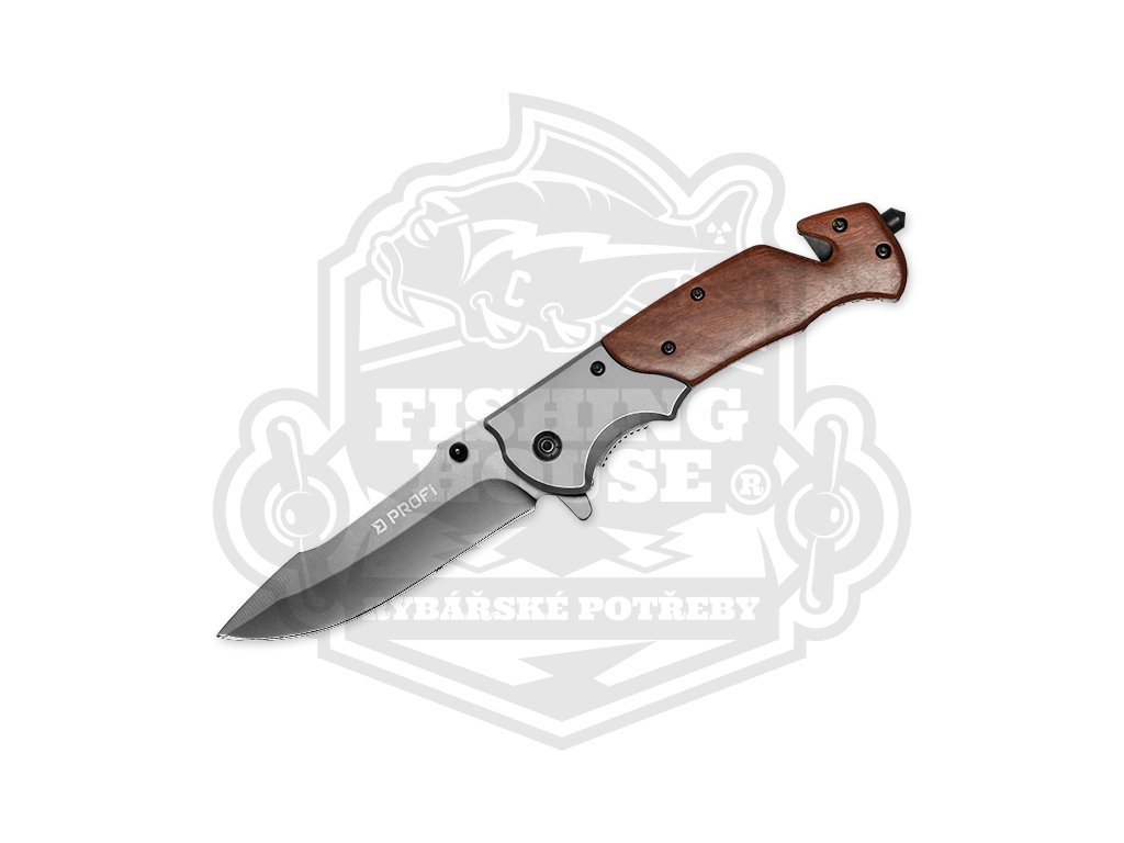 Univerzální skládací nožík Delphin PROFI, který využijete nejen při rybách ale také při turistice nebo procházce v přírodě.Rukojeť je tvořena kombinací skutečného kvalitního dřeva a kovu. Nůž je vybaven klipem, díky čemuž si jej jednoduše umíte uchytit na opasek nebo zajistit v kapse proti vypadnutí. Čepel má celkovou délku 100mm a je zajištěna pojistkou proti sklopení během používání. Čepel má tvar spear-point (kopí) s vrchním falešným ostřím. Nůž PROFI je navíc vybaven řezačem šňůr, provázků a ostrým hrotem pro rozbíjení skla.