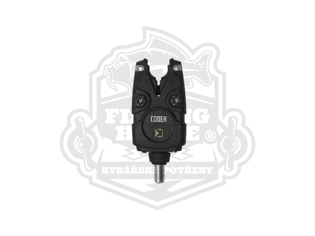 Pomocí spínače "V" je možné vybrat jednu z 5 úrovní hlasitosti, včetně tichého módu. Také si lze navolit požadovaný tón a úroveň citlivosti (v rozmezí 1-9cm), které mají také 5 různých úrovní. Nespornou devizou signalizátorů ze sady CODER je možnost výběru ze 7 barev signalizační LED diody. Každý si tak vybere svou oblíbenou a pokud zatoužíte po změně, tak si jednoduše zvolíte jinou barvu dle návodu. Na zpětný záběr vás upozorní odlišný tón a po každém záběru se rozsvítí na dobu 15 sekund paměťová dioda. Ve spodní části se nachází vstup pro 2,5 mm konektor pro připojení svítícího indikátoru. Během nočního lovu lze zapnout také poziční diodu.