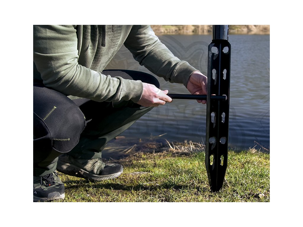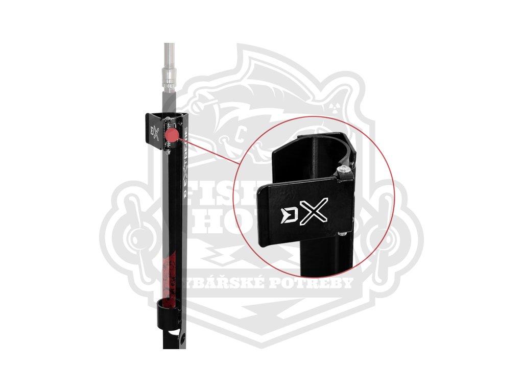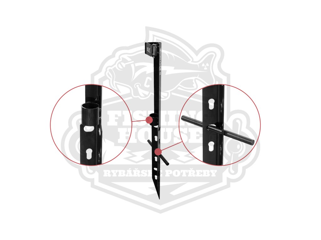 K fixaci sumcového prutu na stojanu slouží robustní klapka v horní části, která zabrání nechtěnému vyskočení prutu při záběru. Spolu s držákem na prut, který je na stojanu osazen pomocí silných svárů, bude nahozený prut na stojanu stabilní za jakýchkoli okolností. Aby se předešlo nechtěnému hromadění vody, na spodku držáku jsou umístěny dva výřezy.