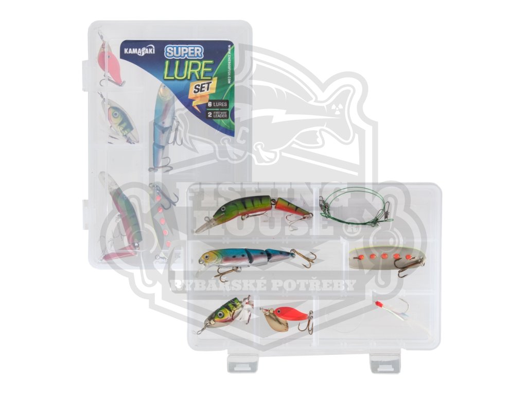 Firma Kamasaki nabízí svůj výběr kvalitních umělých nástrah v umělohmotné krabičce. Nejen pohledově atraktivní - tvarem, typem, barvou - umělé nástrahy se dostaly do této sady, ale při trošce cviku a zkušeností můžeme vidět, že jsme majiteli úspěšných nástrah. Kvůli rozmanitosti a univerzálnosti můžeme vyhlásit, že tato přívlačová sada, která je jedna z nejlevnějších na trhu, nabízí pestrou paletu příležitostí a využití. Při bolenové mušce kombinovaném fluorokarbonovém návazci dostaneme k lovu štik určený drátěný návazec s obratlíkem a karabinkou. V sadě dostaly místo dva wobblery a dvě rotačky - lžíce, na štiky tu má místo jedna odlehčená rotační třpytka. Olověným tělem disponující rotační třpytky zabezpečují přesné náhozy a samozřejmě jejich výsledkem jsou záběry bolenů a štik.